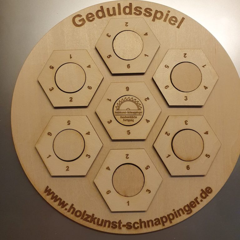 Dieses handgefertigte Geduldsspiel aus hochwertigem Holz vereint Konzentration, Logik und Geschicklichkeit in einem stilvollen Design. Auf einer runden Grundplatte sind sieben sechseckige Elemente mit Zahlen angeordnet, die immer wieder neu kombiniert werden müssen. Ziel ist es, die Zahlen durch geschicktes Drehen und Platzieren in die richtige Reihenfolge zu bringen - solange, bis die gegenüberliegenden Zahlen kompatibel sind. Eine spannende Herausforderung für Jung und Alt. Die präzise Lasergravur sorgt für eine saubere Optik und langlebige Qualität. Ein besonderes Spiel für alle, die knifflige Aufgaben lieben und handwerkliche Holzarbeit schätzen.