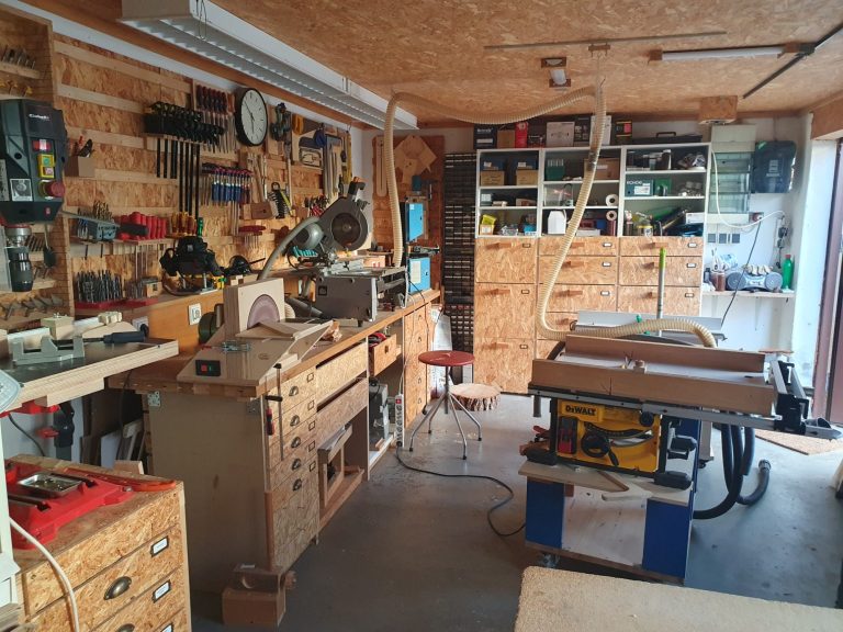 Mir steht eine ca. 30m² große, mit den allen von mir benötigten Werkzeugen – incl. eines Lasers - ausgestattete Werkstatt zur Verfügung.